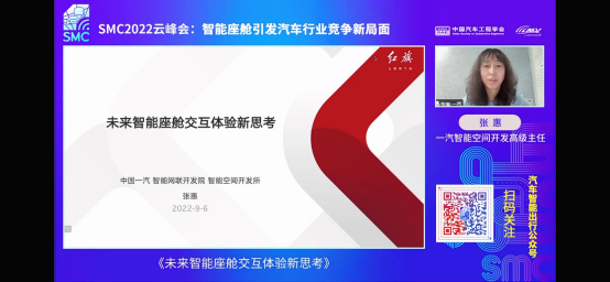 一汽智能空间开发高级主任张惠分别从智能座舱的发展趋势和未来交互体验设计的新思考两个层面进行了介绍。张主任总结出以下结论:一是未来智能座舱交互体验设计是考虑人-车-环境的大交互设计理念,在设计的过程中要充分考虑人的因素。二是交互体验设计要紧密结合AI、车网联、大数据等技术。三是针对自动驾驶系统,更要注重交互体验设计,让用户信任系统但也不能过信。四是未来交互体验设计方向是更自然、多模态融合、情感化的交互,满足用户复杂需求的同时让操控更安全、更自然、更便利、更舒适。