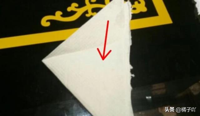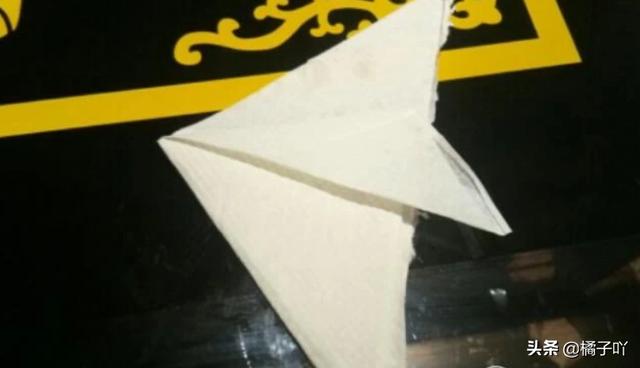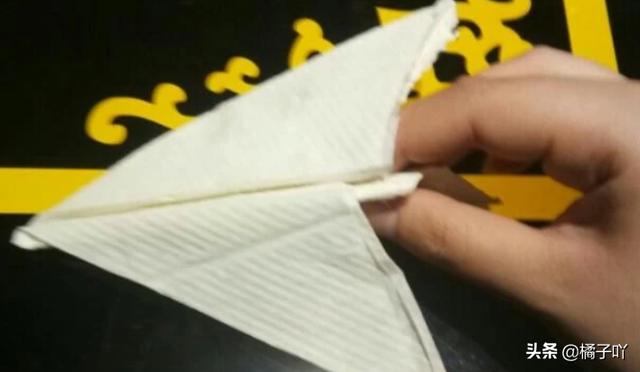2、再对折成一个小三角形,然后把它中间对折一半,另一半也相同;