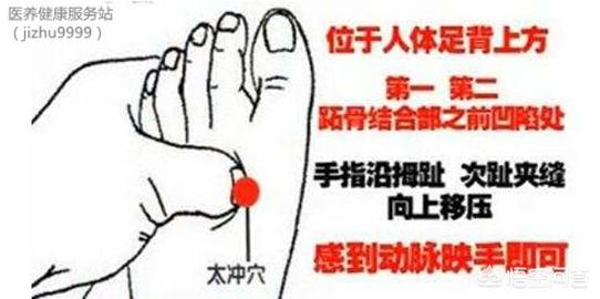 ③主治:太冲穴主治肝肾、少腹、前阴及神志等疾患:如月经不调,痛经,经闭,带下,崩漏,难产,乳痈,阴痛,精液不足,狐疝,遗尿,癃闭,淋病,呕吐,胸胁支满,绕脐腹痛,浮肿,便秘,飱泄,头痛,眩晕,目痛,喉痛,嗌干,口渴,厥心痛,筋挛,脚软无力,脚气红肿,五趾拘急,腰背疼痛,腋下肿,瘰疬,目赤肿痛,疝气,癫痫,呕逆,小儿惊风,下肢痿痹,咽痛,目赤,痫疾,青盲,近视,面瘫,咽喉干痛,耳鸣,耳聋,中风,胃痛,腰痛不可俯仰,咳逆纳差,大便困难或溏泻,咽痛喉痹,阴缩,现代又用太冲穴治疗高血压,肝炎,胆囊炎,神经衰弱,肋间神经痛,血小板减少症,乳腺炎,失眠,胁肋胀痛,黄疸,遗溺,尿闭,遗精,闭经,滞产,高血压,精神分裂症,头痛头晕,失眠多梦,功能性子宫出血,子宫收缩不全,泌尿系感染,腹痛腹胀,心绞痛,胸肋胀痛,肠炎,颈淋巴结核,四肢关节疼痛,下肢痉挛,各种昏迷等。