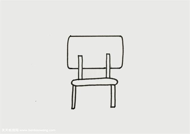 2、往下画出一个扁扁的椭圆,在往下画出椅子腿。一个椅子的背面就画好了。