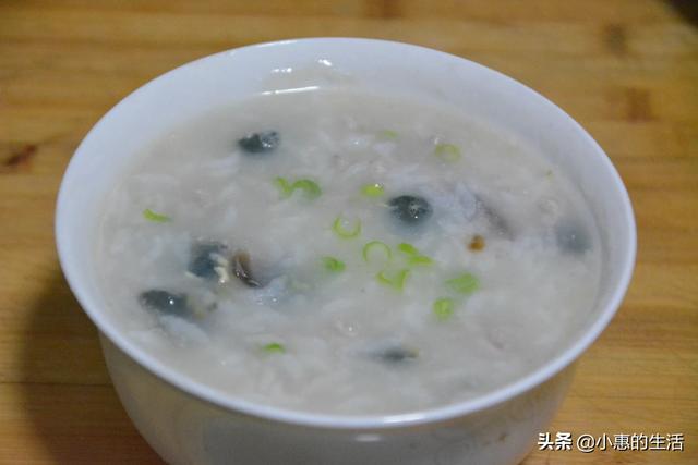 锅内添水烧开,倒入大米煮开花倒入皮蛋,姜丝,瘦肉,当中不停的用勺子搅,二十分钟左右粘稠时撒上葱花就可以了。早餐或晚餐喝上一碗,非常的享受。