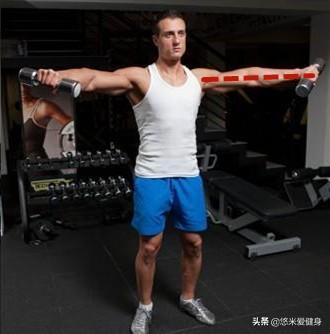 开始将哑铃向着身体两侧上方举高,直到两侧手臂和肩部平齐时停止。