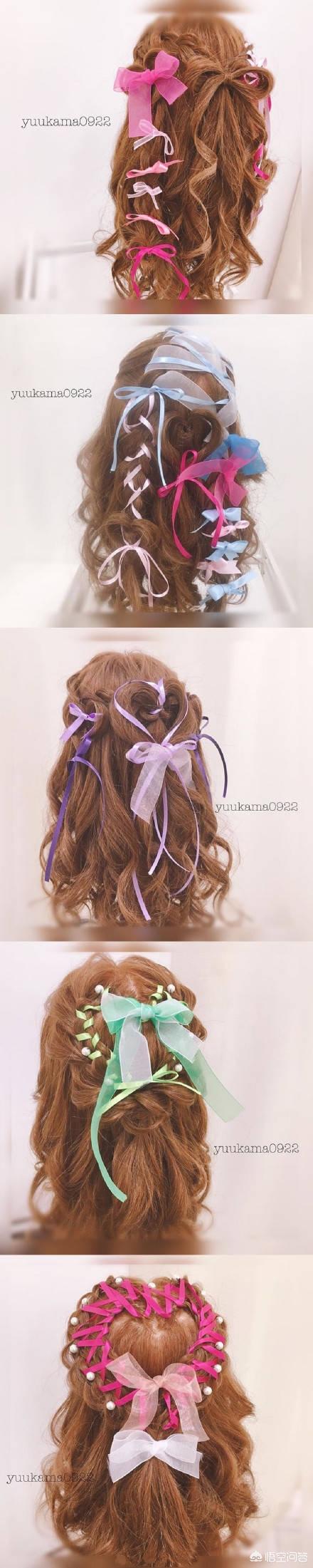 这是一组丝带和头发混编的造型手法,非常适合婚礼、晚宴的场合。