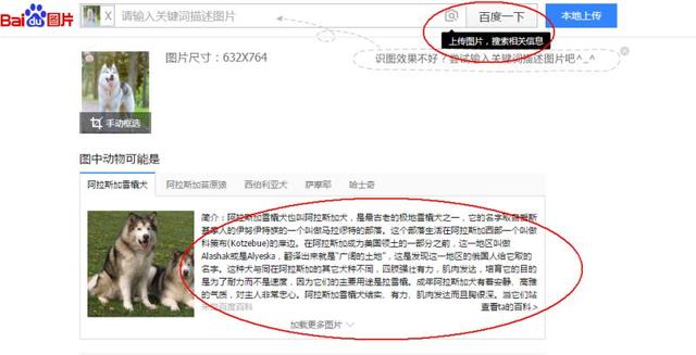 如果不知道这种狗狗的品类,就可以用百度搜图功能