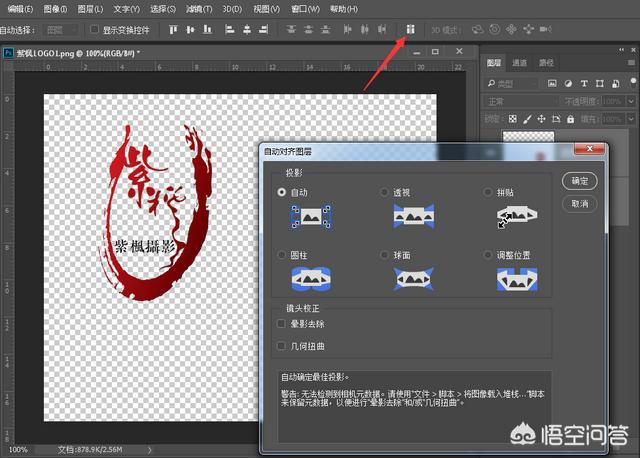 点击自动对齐功能可以调出自动对齐图层对话框: