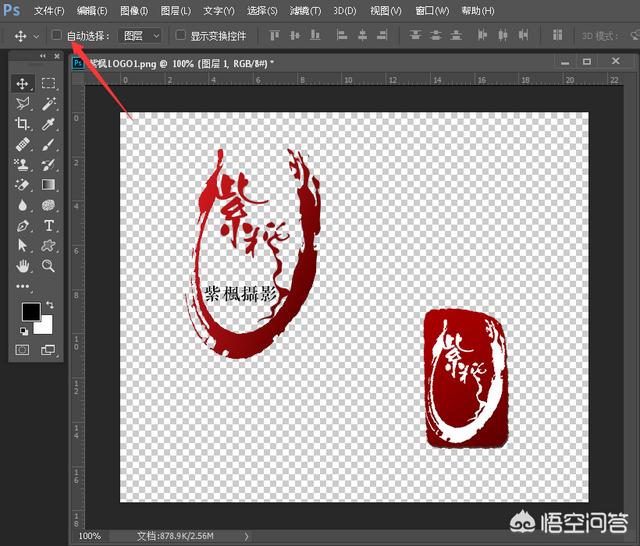 在移动工具的属性栏,可以勾选自动选择,这样可以让移动工具自动判断要移动的图层: