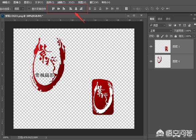 当同时选定多个图层时,可以选择对齐与分布方式: