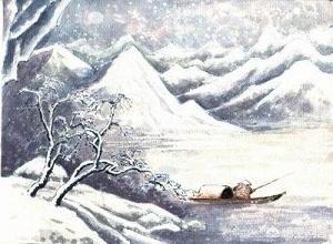千山鸟飞绝,万径人踪灭。 孤舟蓑笠翁,独钓寒江雪。