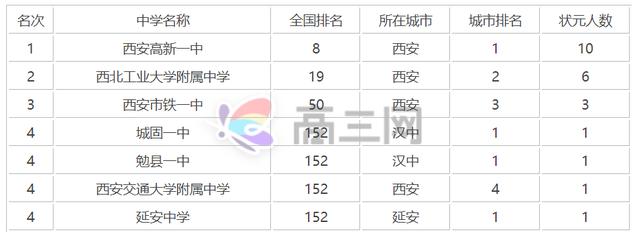 上图是陕西近10年状元最多的高中排名