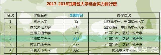 兰州理工大学排位参考:在校友会中国大学排行榜中,兰州理工大学排名全国第211位,甘肃省高校第4位,办学层次为中国知名,区域一流大学。