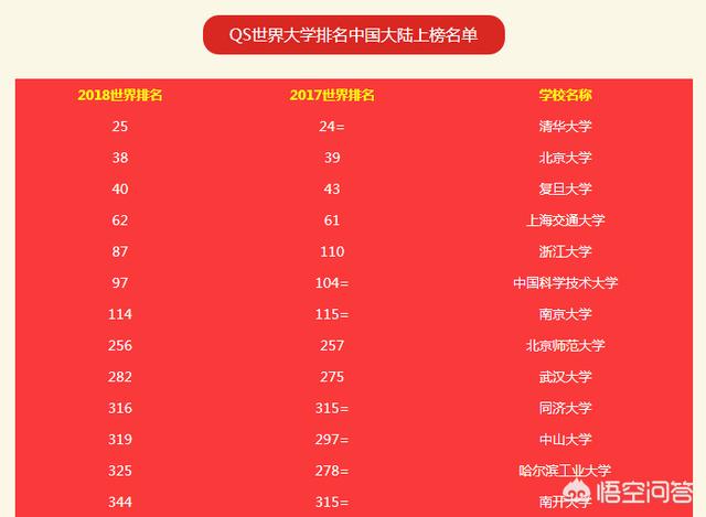 QS排名与世界学术排名、USNEWS以及泰晤士TIMES排名为当今最具影响力的世界大学排名。评价基于6个指数衡量,分别是学术声誉、雇主声誉、师生比、教师引用率、国际教师比例、国际学生比例,因此相比较国内学术排名更具有参考价值。
