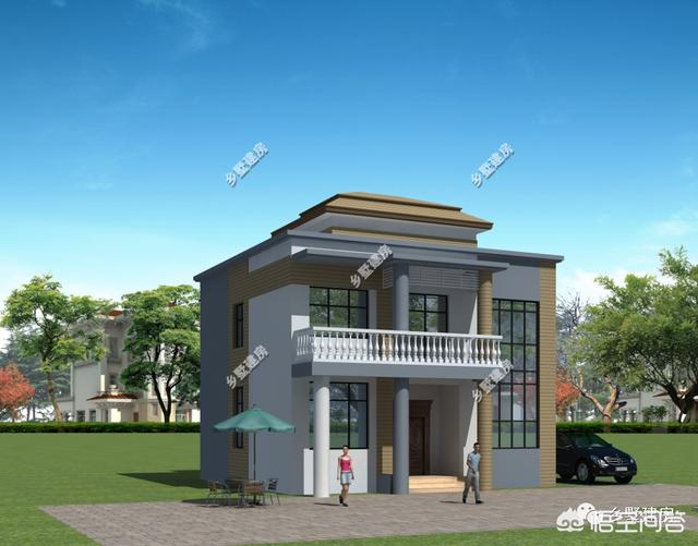 现代风格别墅是最具有时代感,时尚感的别墅风格,方正户型配上方正采光窗,简洁大方又优雅,平屋顶十分接地气,功能性又强,而对于二楼的花瓶栏杆加大型落地窗,又增加了一丝奢华感,现代风的别墅在农村较少见,所以你如果建上一栋,全村最亮眼可不就是你家嘛!