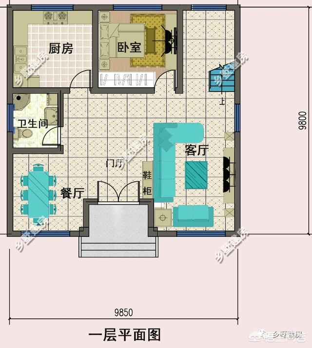 一层设有门厅、厨房、餐厅、客厅、卧室、卫生间。