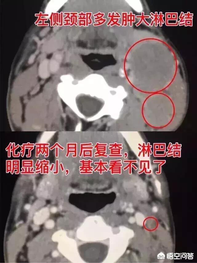 病例三,24岁年轻男性,也是摸到颈部无痛性包块就诊的。确诊淋巴瘤。淋巴瘤对化疗敏感,经过一个疗程化疗后,淋巴瘤明显缩小,如下图。随后的复查未见复发。但是不可掉以轻心,要坚持复查,因为还有可能复发。