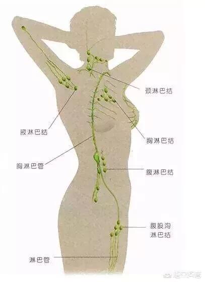 淋巴结是人体正常的结构,分布在全身的、人体重要的免疫器官。正常淋巴结大约2-5mm,呈串样分布于全身,如下图。正常情况下淋巴结我们是摸不到的。人体最表浅的淋巴结在脖子、腋窝、腹股沟的位置。如果这些地方可以摸到一个个的结节或者肿块,就是淋巴结肿大。而淋巴结无痛性肿大,要警惕淋巴瘤。