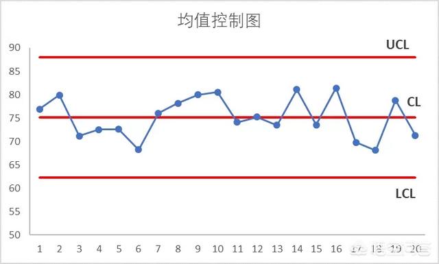 控制图由上限(UCL)、中心线(CL)和下限(LCL)组成, UCL、LCL通常控制界限设定在±3标准差的位置,中心线是所控制的统计量的平均值,点分布于上下限之间则为未出现异常,在控制范围内。
