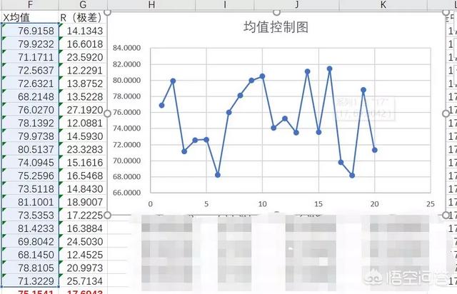 3)、控制图下限和中心线。同理,以此生成控制图下限和中心线。此时得到的图还不是很理想,再调整一下。
