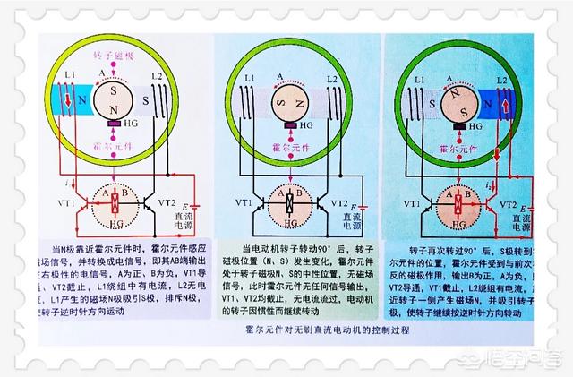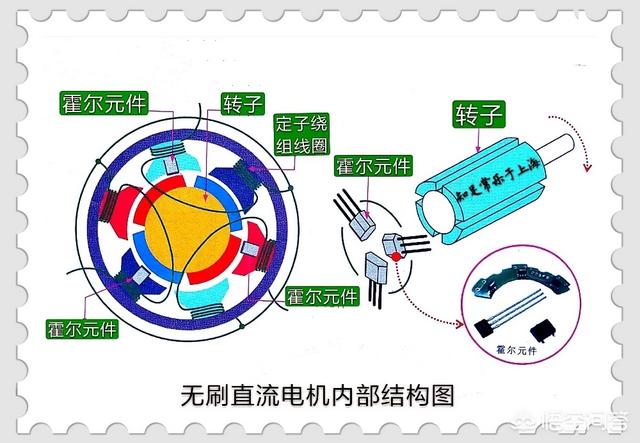 霍尔元件是一种磁感应传感器,可以检测磁场的极性,将磁场的极性变成电信号,送给对应的晶体管的控制极。定子绕组中的励磁电流是根据霍尔元件的信号进行切换,这样就可以形成旋转磁场,驱动转子旋转。