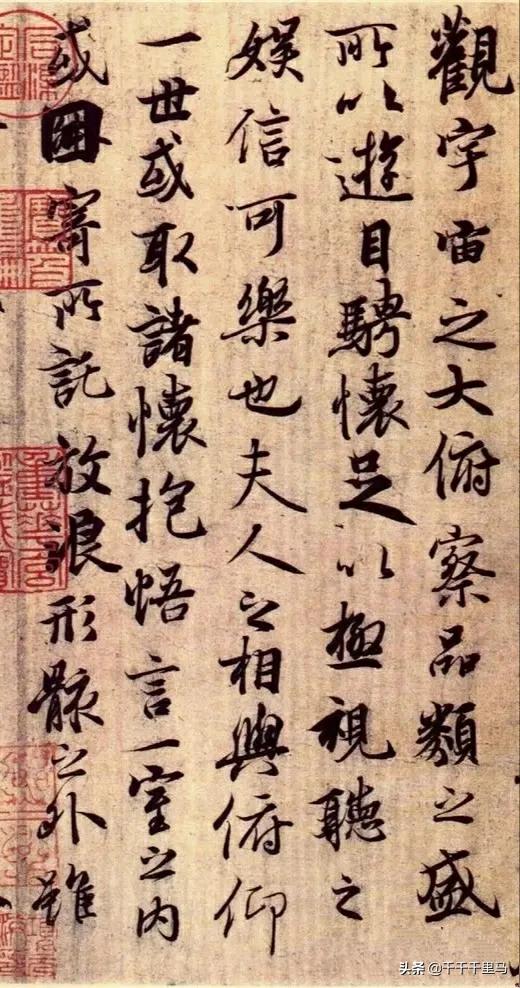 所以宋代依据欧阳询临摹《兰亭序》碑刻的《武定本兰亭序》对于王羲之书法的传播贡献是很大的。