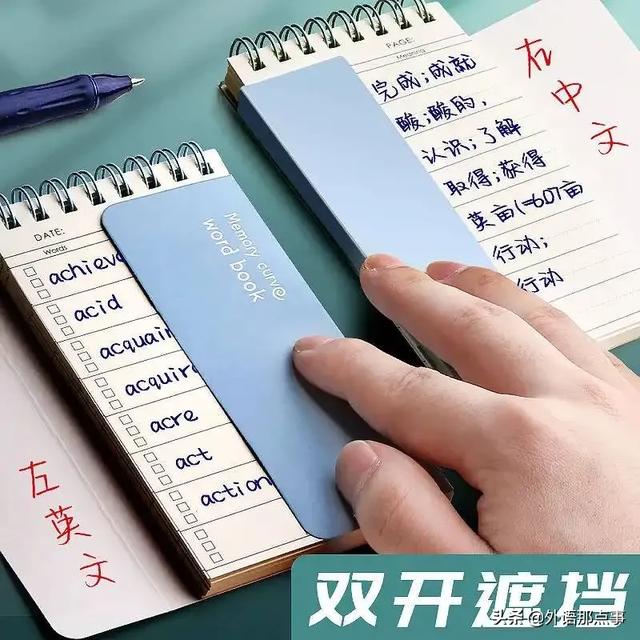 这里推荐一本很好用的单词笔记本,这个笔记本带有翻盖,你把单词写在左边,中文写在右边,背单词的时候就可以很方便的看着英文说中文。用来补充新闻类专属词汇非常的好。