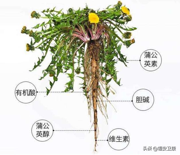 蒲公英又名黄花地丁、婆婆丁、奶奶草、野莴苣菜,系多年生的一种草本植物,花期长、夏秋采收,全草入药,味苦甘、性寒,具有清热解毒、清肝明目、利尿除湿、抗菌消炎的功效。蒲公英对于人体的功效作用有以下几个方面: