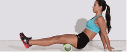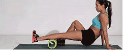 坐立,泡沫轴放在大腿后侧,手臂支撑在腿部后侧,前后滚动大腿后侧。动态滚动1分钟。