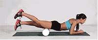 俯卧在垫子上,手肘支撑,泡沫轴放在大腿下方,前后滚动大腿前侧。动态滚动1分钟。
