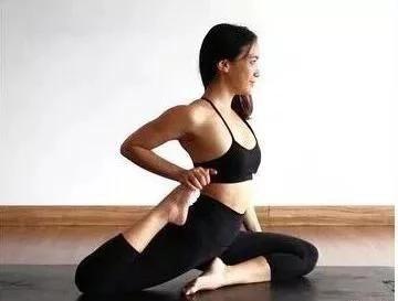 半鸽子式变体。一侧小腿横放在垫子上,另一侧屈膝手抓脚背,随呼气脚后跟靠近臀部。静态保持1分钟。