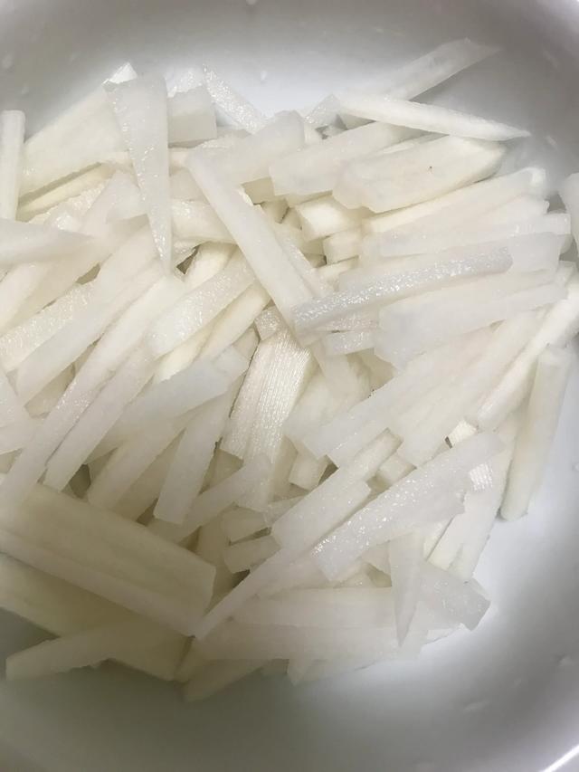 刚好那天晚上我老公买了些卤料,老板送了一小碟白萝卜丝,平时我是不吃白萝卜,因为白萝卜比较凉性,而我肠胃不好,所以平时很少吃,更别说生吃了。