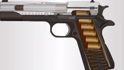 现在主流的自动手枪都是有个套筒的,这个套筒和手枪的枪机部分连一起。然后咱们就看上边这个动图,手枪这个套筒在发射之后会在后坐力作用下往后冲,而在后冲过程中完成抛壳,后坐到底之后再被复进簧带着进弹,复位。