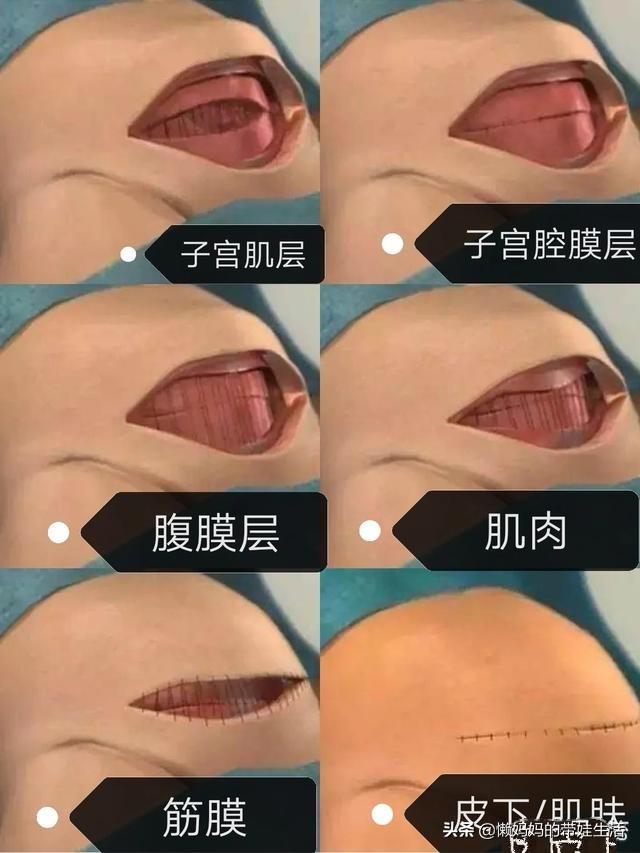 有些孕妈妈感觉侧切非常可怕,因为侧切需要缝3层,来来回回一共需要缝十来针,但是如果剖腹产就更可怕了,剖腹产一共需要缝6--8层。懒妈妈二胎是顺转剖,医生查房的时候说当时一共是缝了6层,而且大部分剖腹产的产妇都是缝6层,如果腹部脂肪厚的话就要多缝一层,一共缝七层,由内到外分别是: