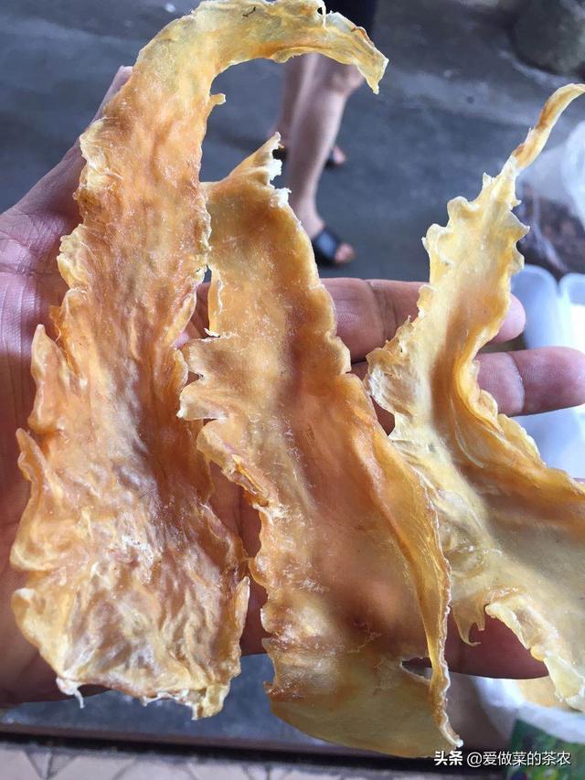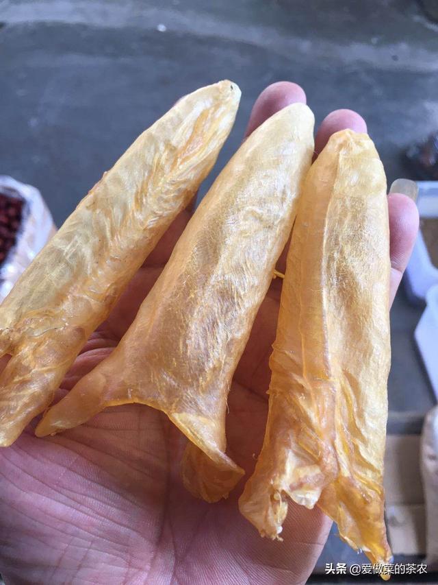 上图的花胶,性价比高。因其不是完整的整个花胶,所以价格比较便宜实惠。这种花胶在批发市场大约三百多至四百元左右一斤。上图的花胶,
