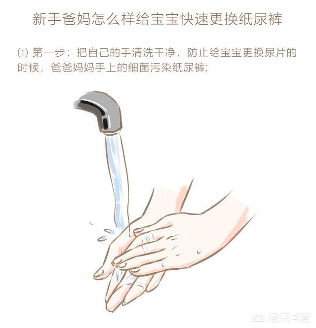 把自己的手清洗干净,防止给宝宝更换尿片的时候,爸爸妈妈手上的细菌污染纸尿裤。