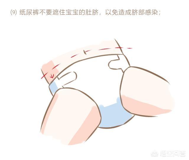 纸尿裤不要遮住宝宝的肚脐,以免造成脐部感染。