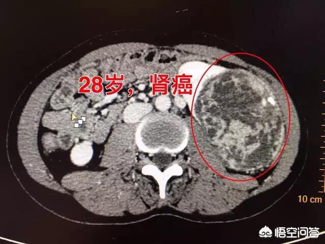 肿瘤长到一定程度,可以在腹部摸到肿块,这时候一般肿瘤都很大了。像上面28岁年轻人一样,10cm大的肿瘤,肯定也会摸到了肿块,只是自己不注意而已。晚期会出现侵犯周围器官和远处转移。