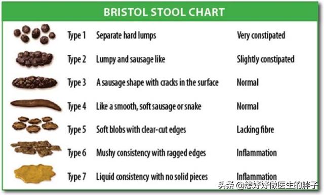 很多术后便秘的患者排便的状态也会有明显的改变,下图第1第2类就是比较严重的术后便秘的患者大便形态上的改变。