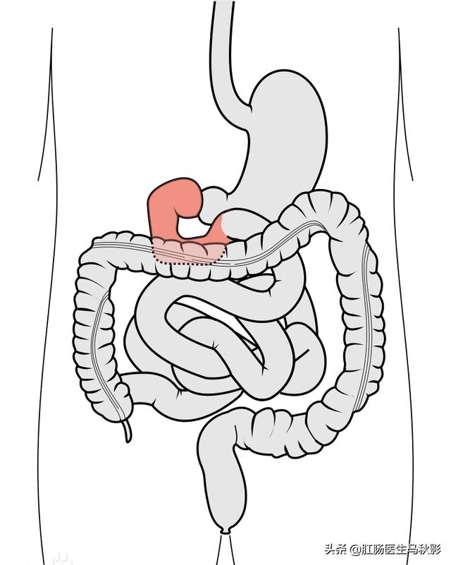 根据评论区的反应,这里详细说下肠道结构,肠分小肠、大肠。大肠起自回肠,可分为:盲肠、阑尾、结肠、直肠和肛管五部分(如上面第一个图展示那样)。小肠分为:十二指肠、空肠和回肠三部分。下图标记部分为十二指肠。