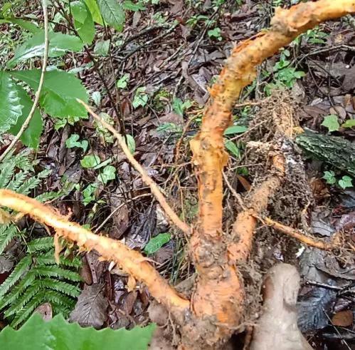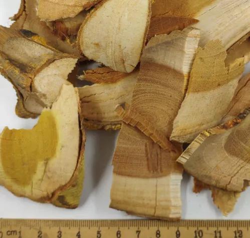 这里指的是它的外皮,有黄色和橙红两种颜色,这就增加了它的辨识度,上面有纵皱纹及少数须根痕,栓皮薄得像纸,轻轻触碰就会脱落。