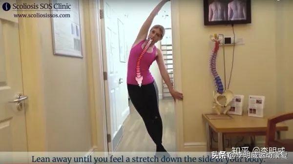 腰向远离门框处倾斜,感受要侧面被拉伸的感觉,保持30s。做3次。