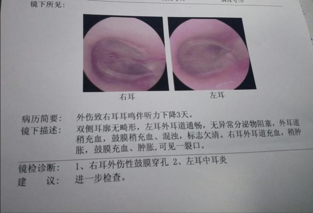 从右耳鼓膜的照片来看,穿孔的区域只是整个鼓膜很小的一部分,对听力不不会有太明显的影响。鼓膜有很强的自我修复能力,这种大小的穿孔后期逐步自愈的可能性很大,但需要注意以下事项: