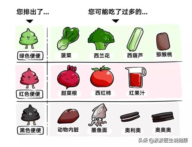 上图指在生理情况会排除的颜色异常大便,此时你需要仔细回忆是否使用过这些食物,如果未食用,请一定警惕,尽早就医。