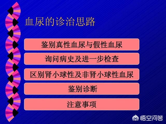 血尿分真性血尿、假性血尿。一般假性血尿多是药物导致尿染色导致,比如使用利福平,尿就是红色的。真性血尿,病因繁多,需要尽可能排出病因,及早诊治。