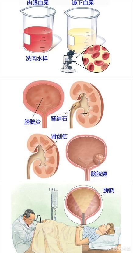 一旦怀疑血尿,需要做尿常规检查,明确尿中有没有血,即是不是血尿,明确血尿后,可以行尿三杯试验,确定血尿发生的部位、来源。