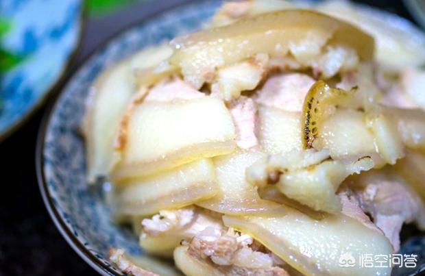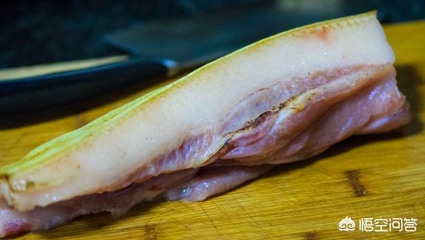选一块好肉,肥瘦相连坐臀肉(也叫二刀),这个部位的做回锅肉最好。冷水下锅,加姜片煮开,一般是把污沫煮出来后,打干净沫再大火15分钟,然后关火焖15分钟,等肉冷了之后捞出切片,回锅肉切片不能太厚,薄一点更好爆油;