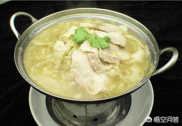 我们叫酸菜汆白肉,一,五花肉2斤,洗干净,下锅紧血水取出,放到高压锅里,加各种调料,花椒,八角,香叶,葱,姜,蒜,盐,少许料酒和醋,千万不能放酱油,要保持原汁的白色,开火15分钟捞出,肉切成薄片。二,用自己家腌的酸菜心一颗,切成细丝,放油开火,葱姜蒜煸香,放酸菜炒5分钟,加煮五花肉的高汤,上面码上切好的肉片炖20分钟。三,喜欢吃辣椒的,可以自己做辣椒油,我家为了省事,用火锅蘸料海琦王代替,有两种一种是辣的,一种是不辣的,切一小碗香菜碎,喜欢喝汤的可以自己放。一切准备就绪,吃饭了,这是我家冬天特别喜欢的一道菜。谢谢!