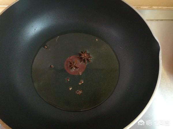 炒锅中放入调和油,油烧热后放入花椒和八角爆出香味