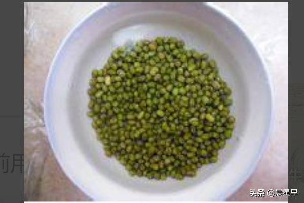 1、 首先我们需要把绿豆提前用水泡着,大约要泡4-5个小时左右才好。