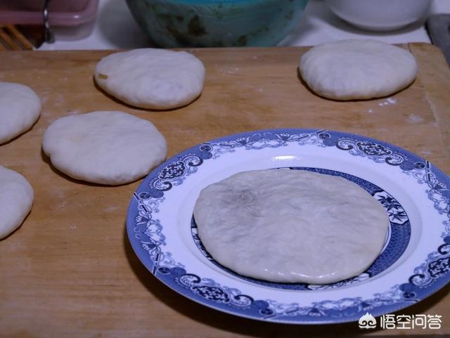 将面团出剂,擀成薄皮,像包包子一样将肉馅包好,放到案板上一个个按平。取一个盘子,里面抹油,把包好的馅饼放进盘子里,馅饼上面抹油,用手指慢慢的将馅饼压扁,只要不露馅,越薄越好。
