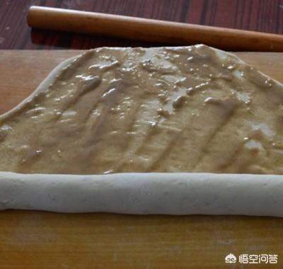四、面团醒好后揉匀擀开,擀成1厘米以内的大薄片,将油酥倒上抹匀。