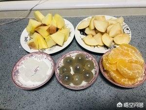 家里有什么想不起来吃或者吃不完的都可以放进去,我家里正好有苹果梨橘子和桂圆,当然也可以放山楂提子等,苹果和梨最好是都要放,其他任意搭配